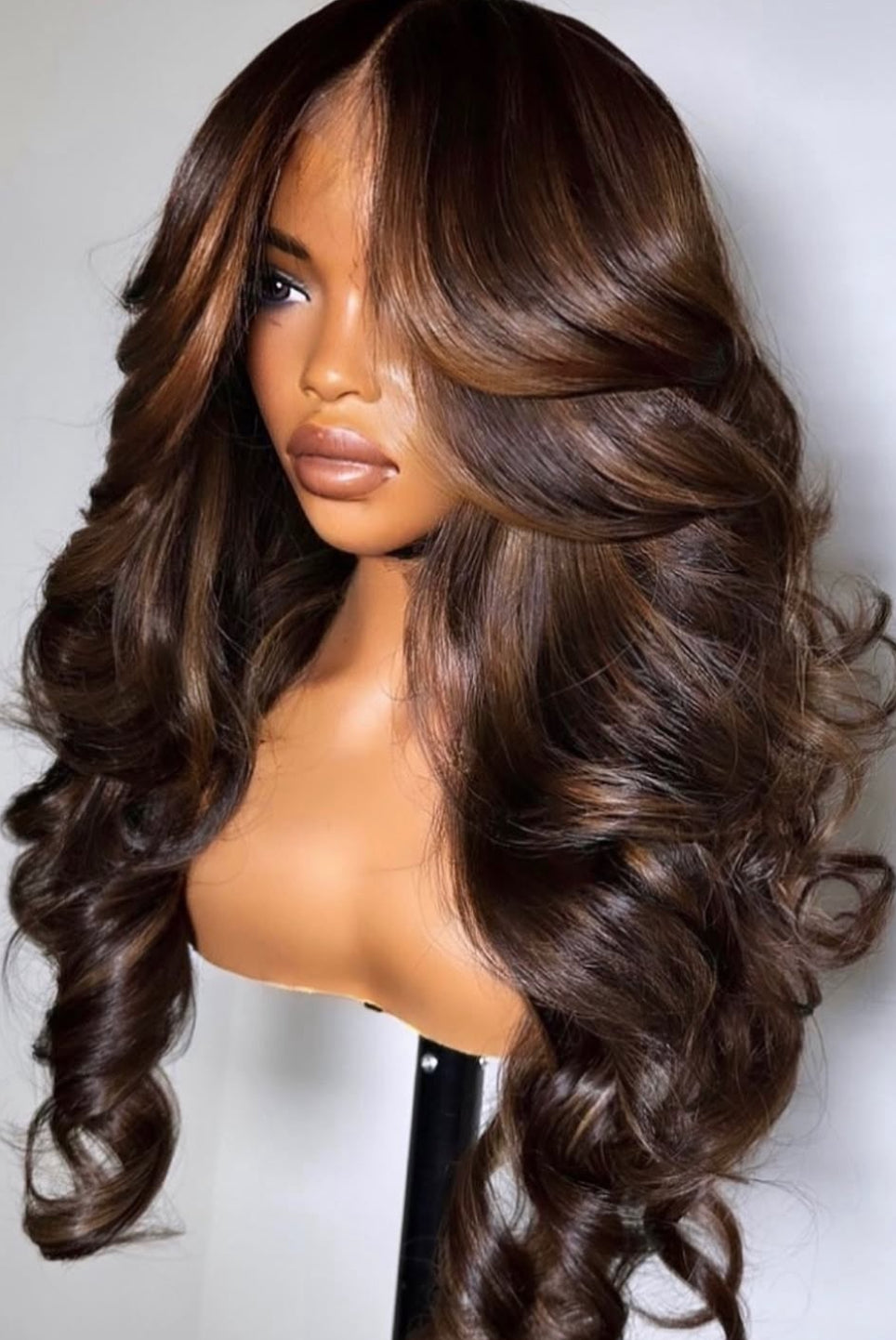Luxurious glue-less custom wig featuring five bundles (18", 20", 22", 24", 24") for ultimate volume and length. Designed with full highlights for a dimensional, sun-kissed look. With proper care and maintenance, this wig offers long-lasting durability, ensuring a flawless and glamorous style for an extended period.